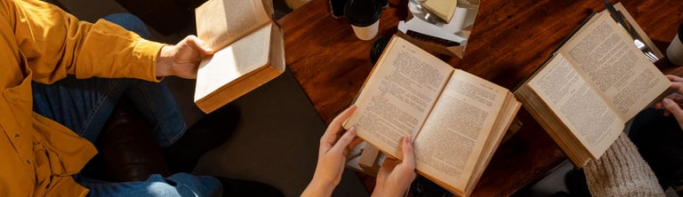 Reuniones una vez al mes vía Zoom o WhatsApp para debatir el libro del mes.